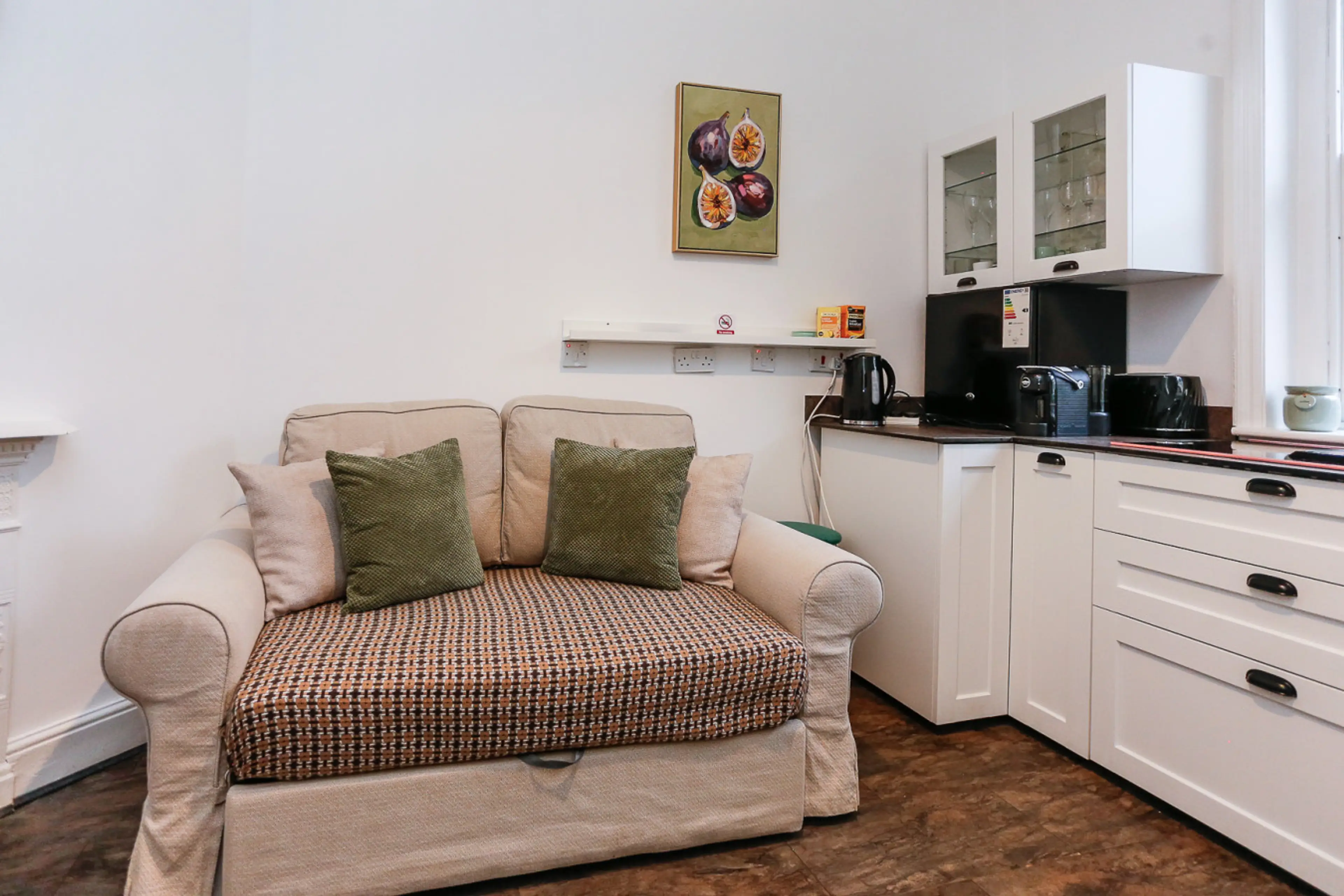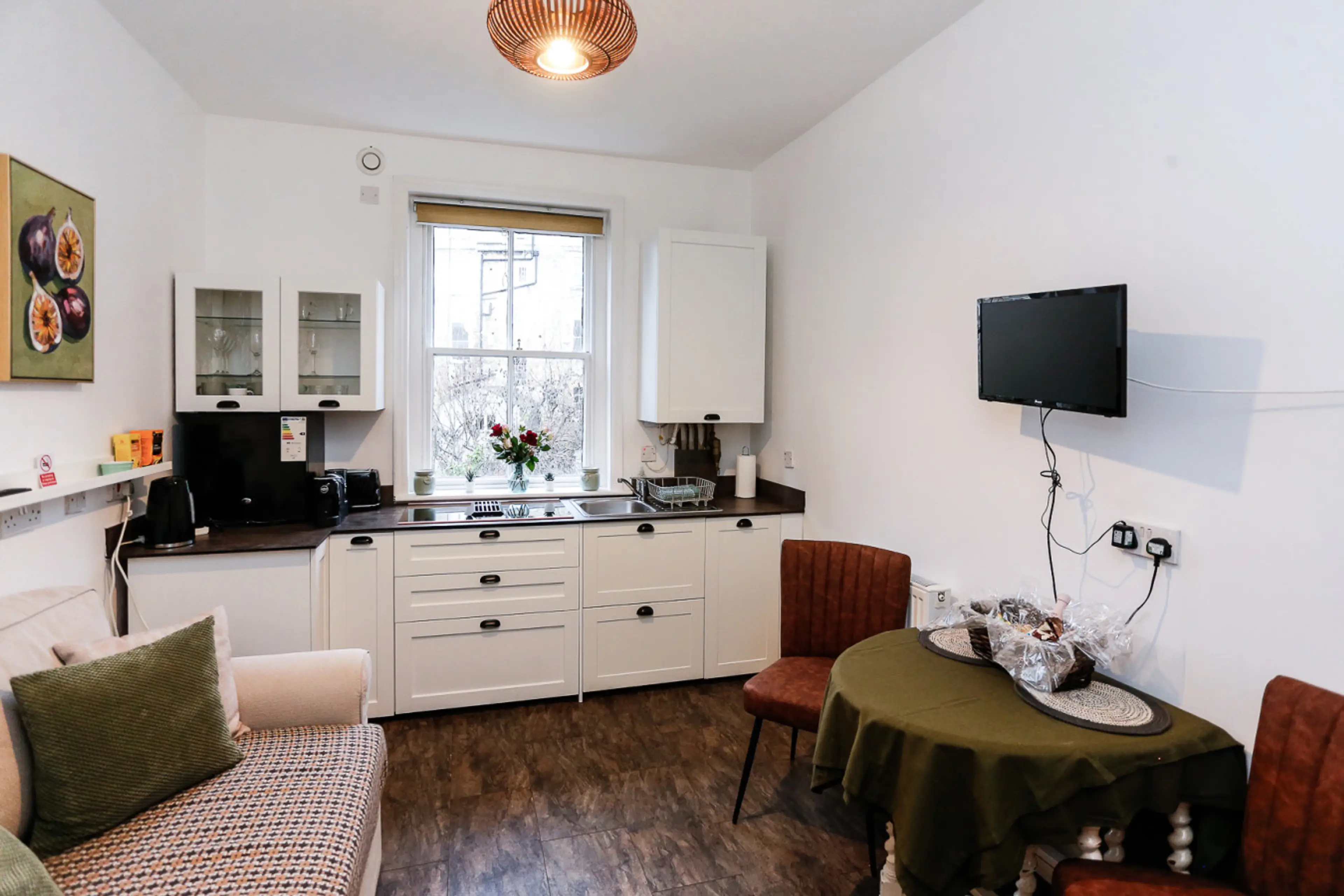 This comfortable one-bedroom apartment features a Living / Kitchen / Dining (All-in-One) offering a relaxed and homely space to enjoy your stay. The kitchen includes a stovetop, refrigerator, microwave, kitchenware, and an extendable dining table, providing everything needed to prepare simple meals...